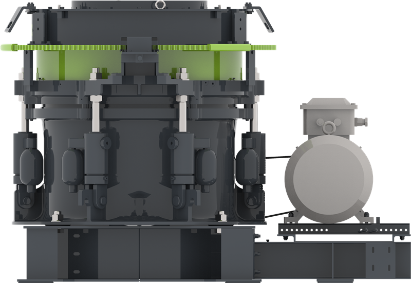 В секторе отклонения подвижного конуса дробленая порода под действием силы тяжести свободно падает в разгрузочную щель.