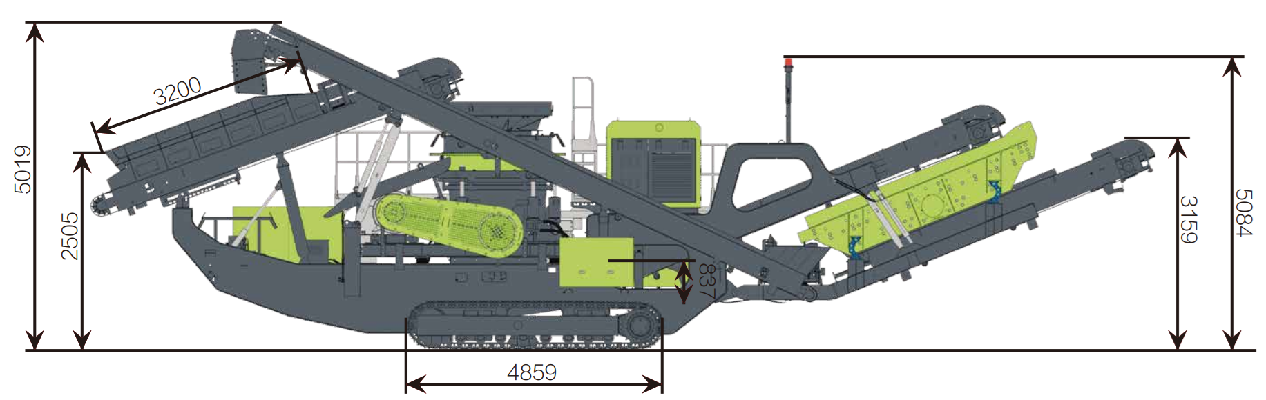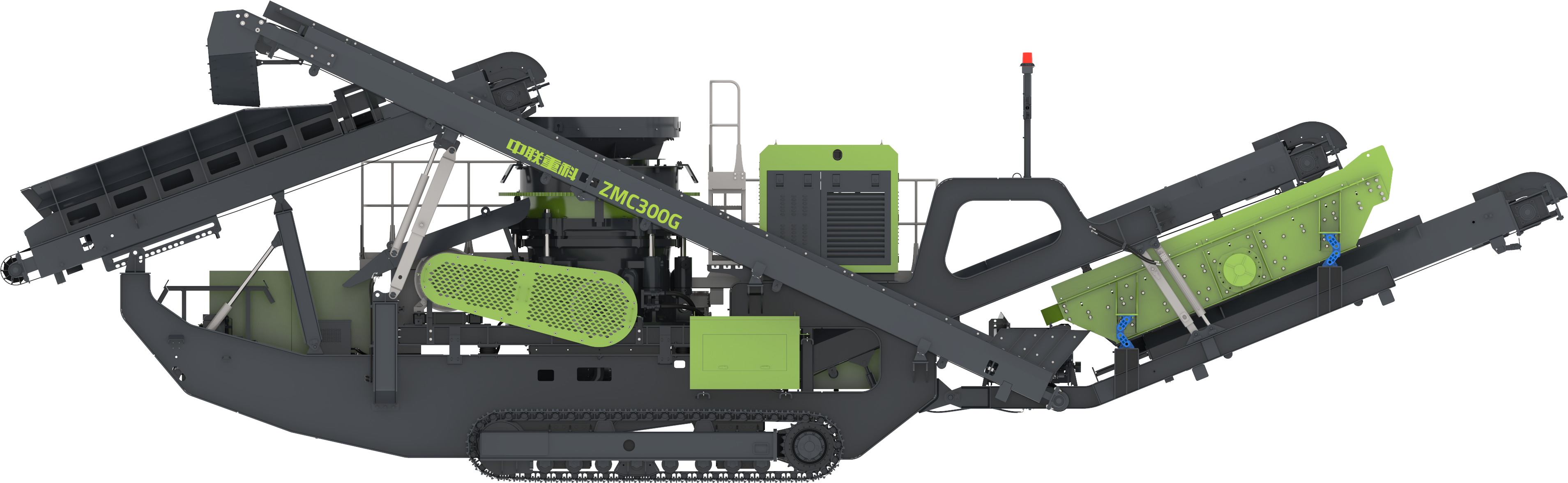 Максимальная производительность мобильной конусной дробилки ZMC300G производства ZOOMLION составляет 320 т/ч, а максимальный размер подаваемого зерна - 210 мм.